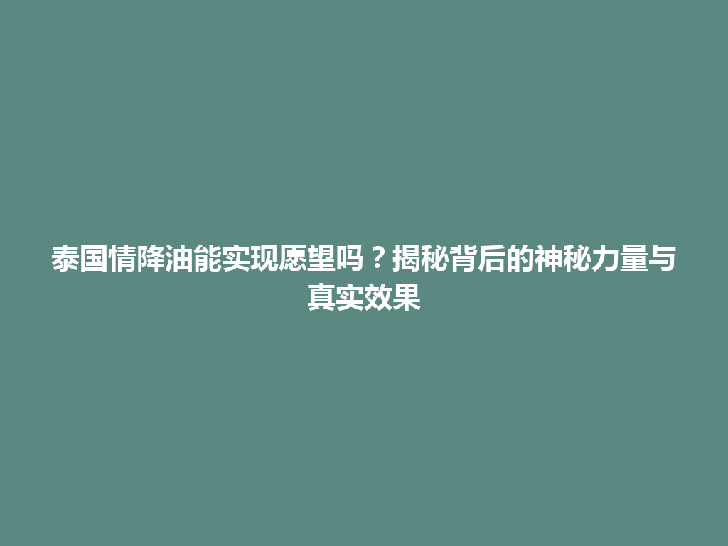 豆包网 情感资讯 昆都仑区泰国情降油能实现愿望吗?揭秘背后的神秘力量与真实效果
